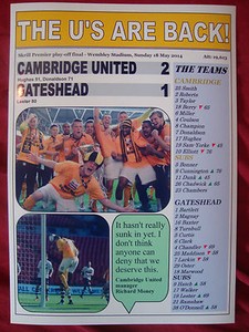 Cambridge United 2 Gateshead 1 - 2014 Conference Play-off Finale - Souvenir Print