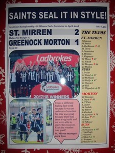 St Mirren 2 Morton 1 - 2018 - St Mirren champions - souvenir print