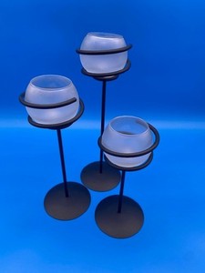 PartyLight 3er Set schwarze Metall Spiral Kerzenhalter mit Milchglas Windlichtern