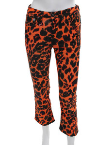 R13 Damen Jeans Cropped Animal Print Orange Größe 24