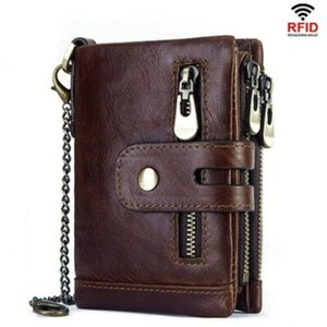 GZCZ Herren Leder Geldbörse Doppelreißverschluss Portemonnaie Geld Münzbörse + Diebstahlsicherung Kette CHF 15,96