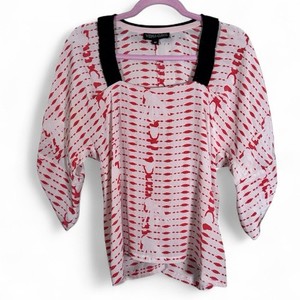 Vena Cava Bluse weiß rot Seide bedruckt Damen M Kurzarm Kragen Hemd
