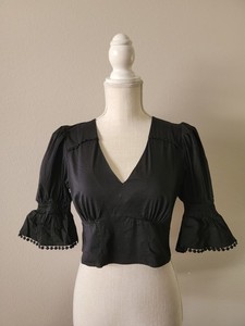 Schwarz Baumwolle Cropped V-Ausschnitt 3/4 Glockenärmel Bluse Small Milk & Honey Crop Top