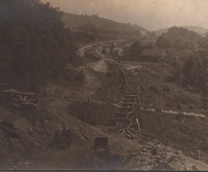 Gebäude Holzbrückenbau unbekannter Ort Echtfoto RPPC Postkarte