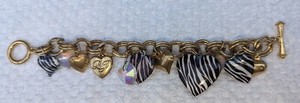 Armband von Betsey Johnson Charms Herz Medaillons Zebramuster goldfarben apr24