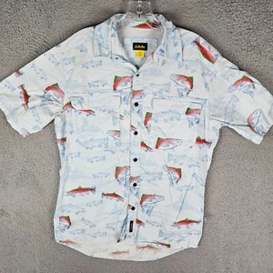 Cabela's Angelhemd Herren mittelblau Forellenmuster Taschen belüftet Knopfleiste