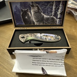 Woodland Creek Wildlife Wolf Klappmesser Edelstahl 08TD Neu in Box