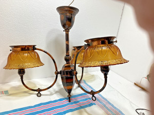 Antike 3-armige Messing Gasbefestigung umgebaut auf elektrischen vorgeschnittenen Schirm #4623 CHF 318,48