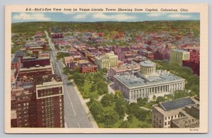 Vogelperspektive des State Capitol Columbus Ohio OH 1950er Postkarte Luftaufnahme