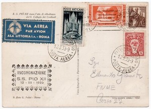 Vaticano -35 L. serie Papi con 15 L. Posta aerea Pio XII su busta per l'estero