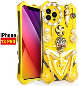 Für iPhone 13 Hülle Luxus Panzer Metall Aluminium Mechanisch Handarbeit Totenkopf Schale