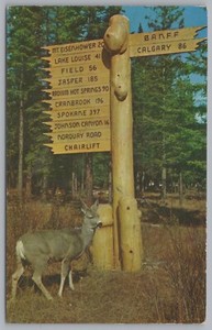 Vintage Maultier Hirsch Postkarte rustikales Richtungsschild Banff Nationalpark Kalifornien