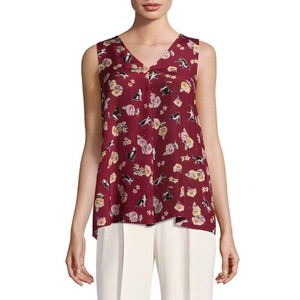 Neu mit Etikett $ 150 Weekend Max Mara L Bruno ärmellose Seidenbluse Oberteil Katze Blumendruck CHF 70,48