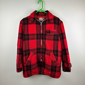 Vintage Carter's Woll Jagd Mantel rot Futter Conmar Reißverschluss groß 60er kariert