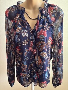 Haver & Blair Blouse, Floral, Sheer, VNeck, Long Sleeve, Ruffle, Blue, Size XS CHF 10,79Bisher: CHF 14,38