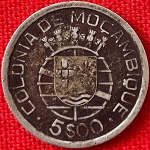 1938 Mozambique 5 Escudos Silver Coin KM# 69