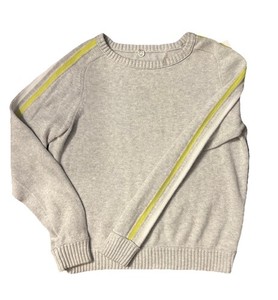 Margaret O'Leary Pullover Damen Baumwolle hellgrau mit gelben Ärmeln Streifen XS