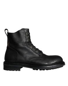 Dolce&Gabbana Herren Stiefeletten 100% Leder Einfarbig Schnürung Freizeit Booties Gr. EU 45