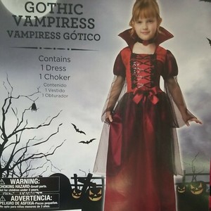 Mädchen rot & schwarz Gothic Vampirin Halloween Kleid Kostüm S 4/6