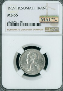 1959 FRENCH Somaliland Somali Djibouti KM8 1 Franc NGC MS65 MAC SPOTLESS *