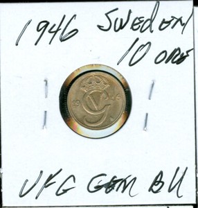1946 SCHWEDEN 10 ORE ULTRA PREFECT GEM BU RARE *