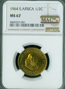 1964 SÜDAFRIKA HALBE CENT CENT NGC MS67 PQ MAC 2. FEINSTE KLASSE MAKELLOS