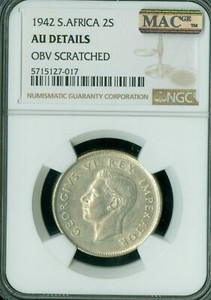 1942 SÜDAFRIKA 2 SCHILLING NGC AU58 DETAILS MAC MAKELLOS *