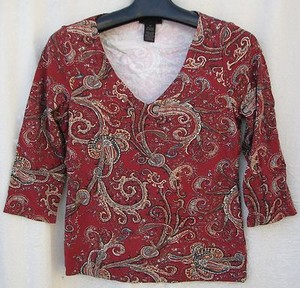 ~RUE 21 Gr. S SS JAKOBSMUSCHEL GERAFFT HELLBRAUN/BRAUN/ROT GEBLÜMT~$4,50 VERSAND~MADE IN USA~Rue21 CHF 10,45
