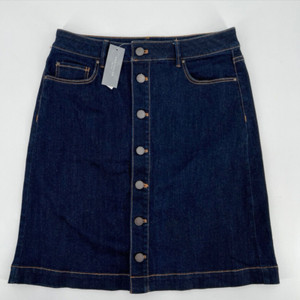 Neu mit Etikett Ann Taylor Damen Denim A-Linie Rock Größe 4P Petite dunkelblau Denim Knöpfe CHF 24,03