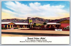 Desert Palms Motel Mesquite Nevada NV Straßenrand Chrom um 1950 Postkarte