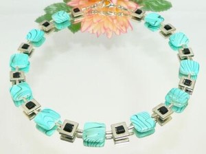 Halskette Würfel Cube Hämatit Quadrat Strass türkis blau 518i