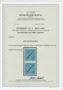 SELTEN Freimarke ANK 243 A Paar Mitte UNGEZÄHNT Postfrisch ** GEPRÜFT