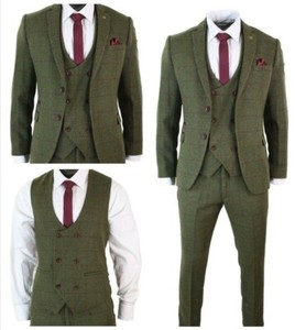 Herren grün Tweed Vintage Retro 3-teilig Abschlussball Bräutigam Smoking Hochzeit Anzug maßgeschneidert CHF 80,78CHF 91,79
