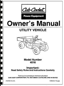Cub Cadet Owners Manual Model #4016 Utility Vehicle
