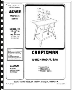 Sears Craftsman Radial Arm Saw Manual No.113.197110