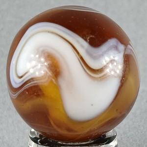 The marble shipped on time and was a good value since shipping was combined with the other marbles I purchased. Everything was packaged safely. This marble is a cat eye style and is the perfect banana. I definitely love it! It’s one of the favorites in my entire collection! The seller was very responsive to any questions and I will definitely buy from them again I highly recommend this shop☺️