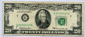 1969 US $20.00 FDR BANKNOTE, PRINTED IN CHICAGO, AMERICA
