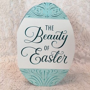 Frohe Ostern Karte Punze Grußkarte blau weiß Ei