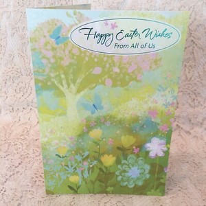 Frohe Ostern Karte Punze Grußkarte Blumen Schmetterling Baum