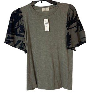 t.la Anthropologie XS T-Shirt Moosgrün Schwarz Blumenärmel Kurzarm Neu mit Etikett