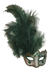 MAR 18 - EINE HOCHWERTIGE ITALIENISCHE MASKE HANDGEFERTIGT VON HANDWERKERN, SMARAGDGRÜNE FEDERN. CHF 44,69