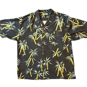 Tommy Bahama grau und gelb Palmenmuster Hemd 100 % Seide Herren Größe XL