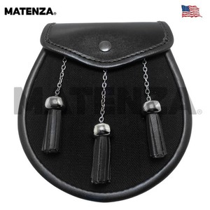Matenza - schwarzer Leder Kilt Sporran mit 3 Quasten - traditioneller schottischer Stil