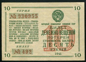Russia Lottery Ticket 10 Rubles 1941, Series: 030955, XF