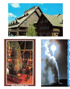 Lot of 3 PCs-Yellowstone-Old Faithful Inn & Geyser 4 x 6 Chrome Unposted