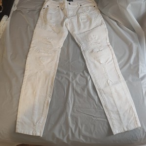 Mens Skinny Stretch Jeans Slim Fit Basic White Distressed look, size 34 waist