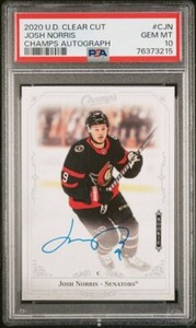 Josh Norris PSA 10 ROOKIE 2020 UD Clear Cut Champs Auto on card Senators