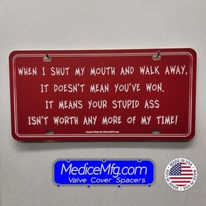 License Plate "When I Shut My Mouth and Walk Away it Doesn't Mean You've Won."