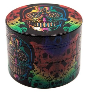 2" Tabak Kräuter Mühle Gewürz 4 Stück Metall Chrom Legierung Zerkleinerer TOTENKOPF Halloween
