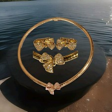 Artisan 925 Sterlingsilber Gold Gefüllte Halskette Ohrringe Set 15 Saiten Halskette